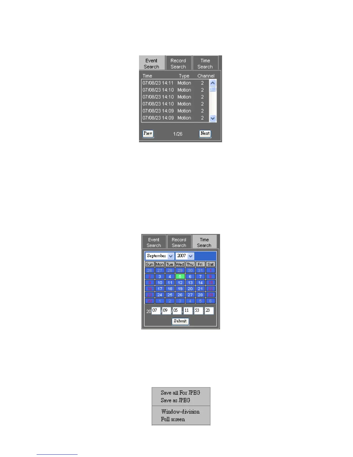 To save live or playback video to JPEG files, please perform right mouse click on Video