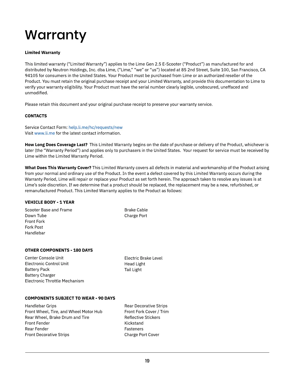This limited warranty (“Limited Warranty”) applies to the Lime Gen 2.5 E-Scooter (“Product”) as manufactured for and