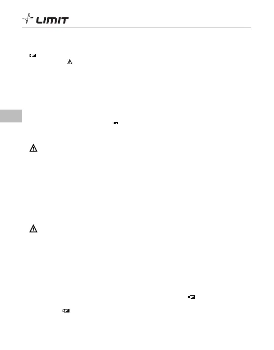 on < 2,2 V, -symboli näkyy näytöllä koko ajan eikä mittari enää toimi.