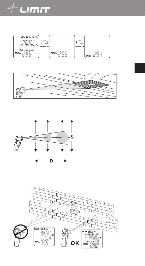 Rett termometeret mot måleområdet og start målingen. Beveg deretter termometeret sakte opp og ned for å