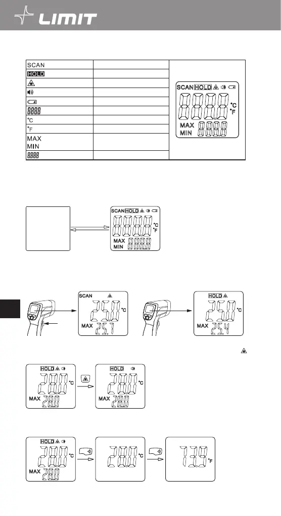 2.2 Soltar el disparador. Desaparecerá el icono SCAN y aparecerá el icono HOLD, indicando que la