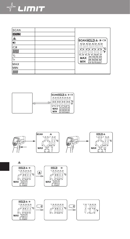 2.2 Zwolnić spust, zniknie symbol SCAN a pojawi się symbol HOLD, sygnalizując że pomiar jest