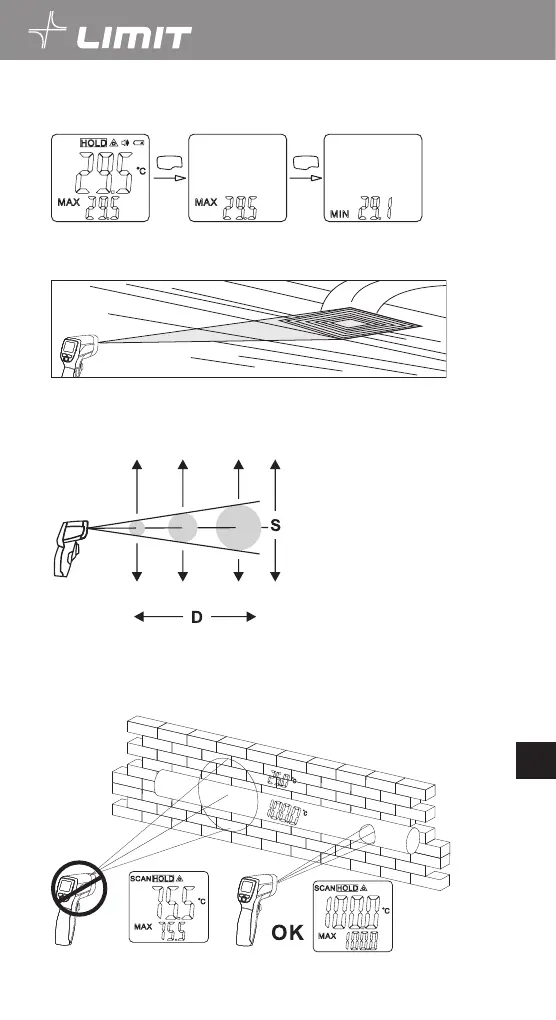 Suuna termomeeter mõõdetavale pinnale ja alusta mõõtmist. Seejärel termomeetrit aeglaselt üles-alla
