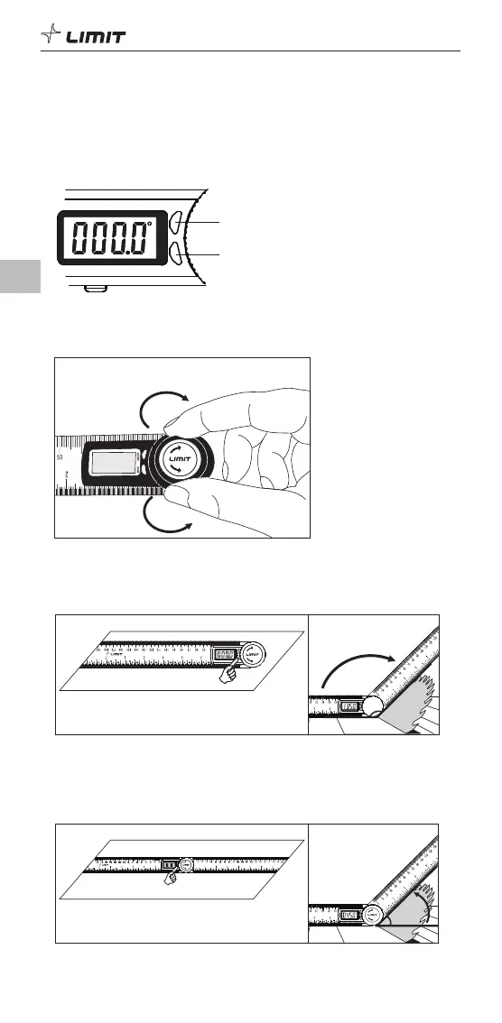 nulstille instrumentet. Drej linealen for at måle vinklen.