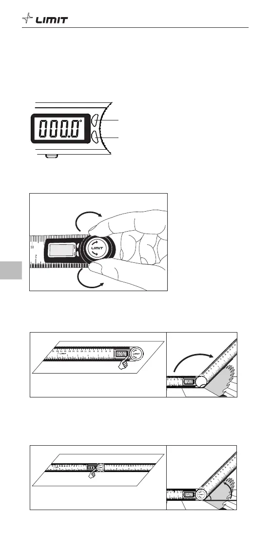pour définir le zéro. Faire pivoter la règle pour mesurer l'angle.