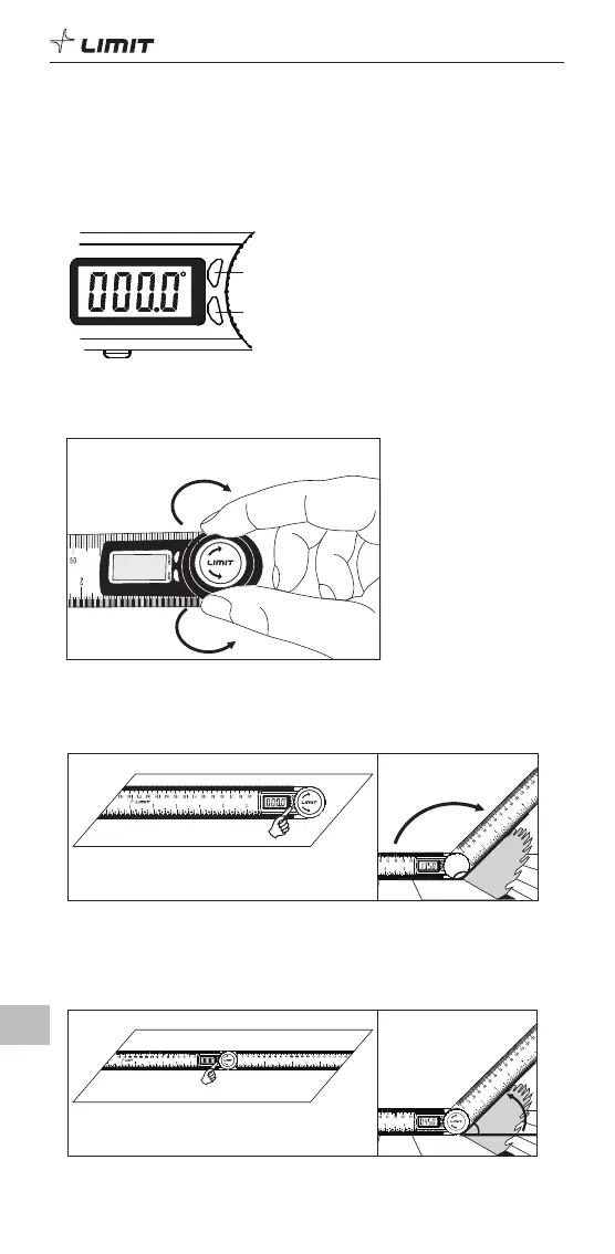 nustatytumėte nulį. Sukite liniuotę, kad išmatuotumėte kampą.