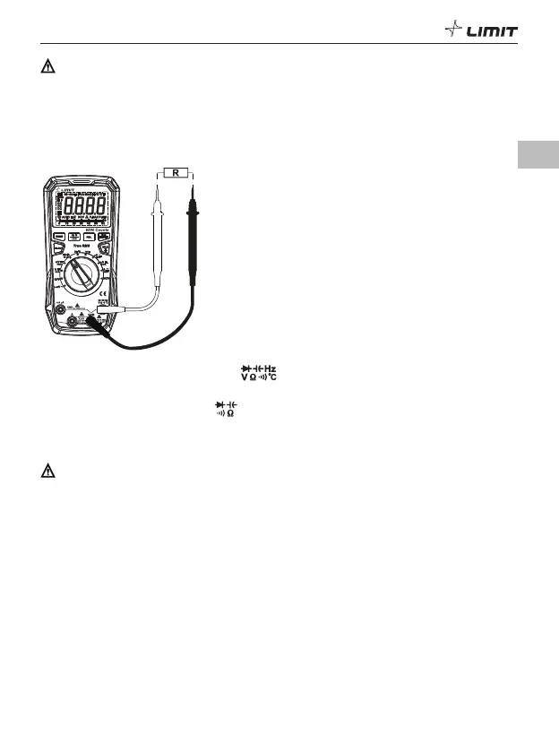 • Før du måler motstanden, må du slå av strømtilførselen til kretsen og lade ut alle kondensatorer