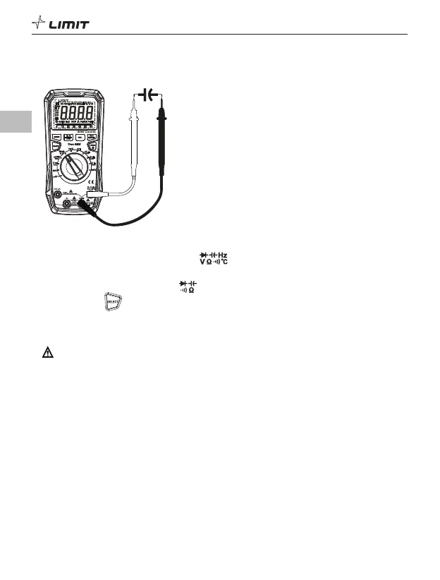 • Hvis den målte kondensatoren kortsluttes eller kapasitansen overstige4r maksimumsområdet, vil