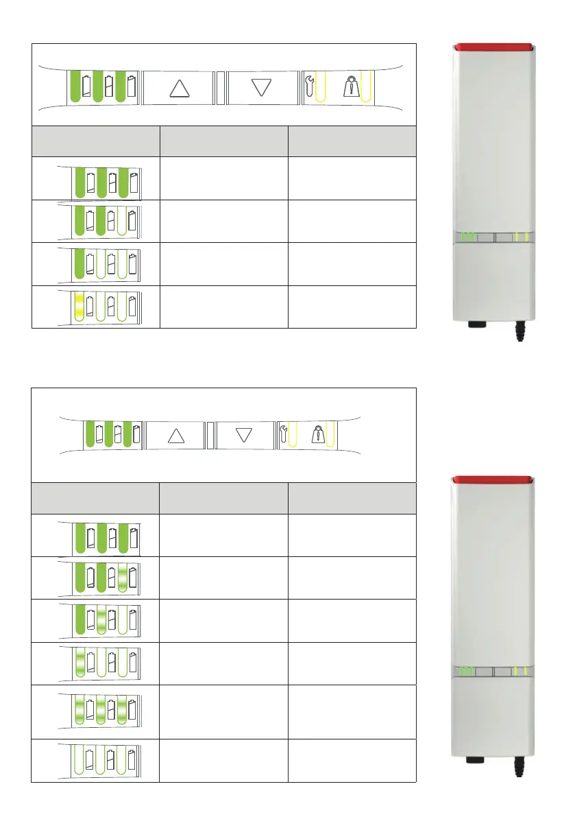 LED 1 - LED 2 - LED 3 LED state (Not listed = off) States while charging