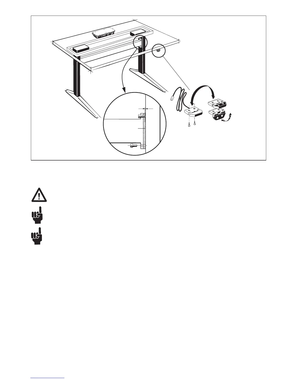 To avoid damage of the lifting unit there must be min. 1 mm space between the end of the screw for the mounting