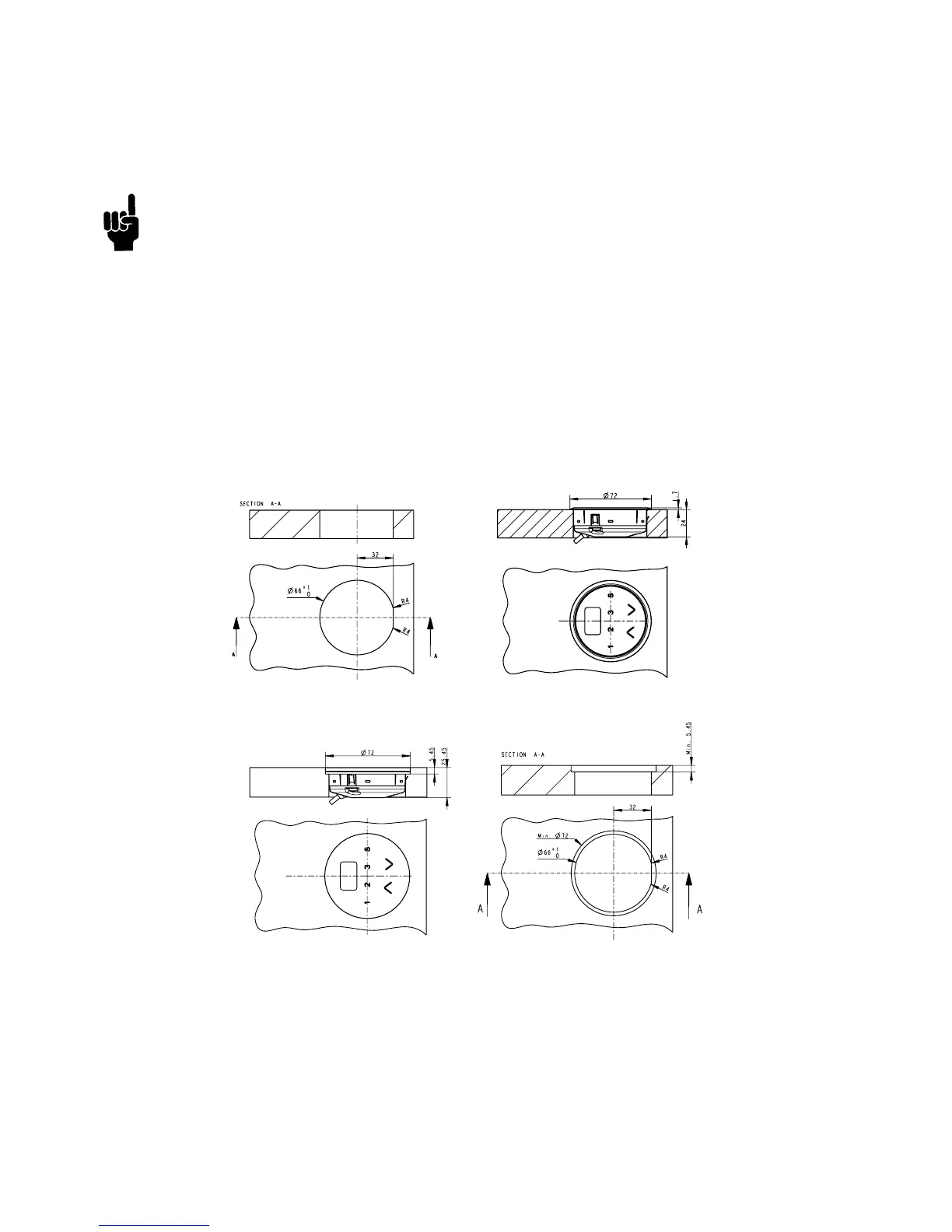 The hole in the tabletop has to be made according to the drawing. The DPT is mounted in the hole and the two screws on the