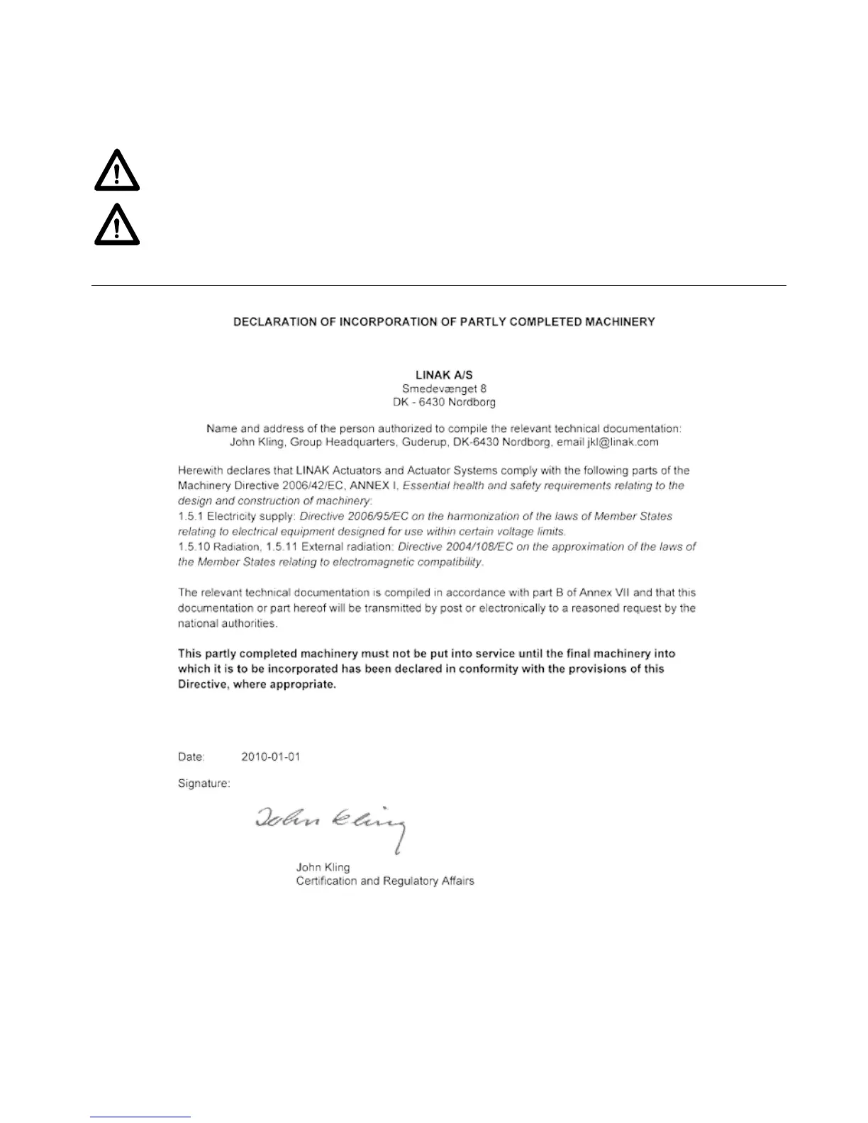 repairs must only be carried out by authorised LINAK