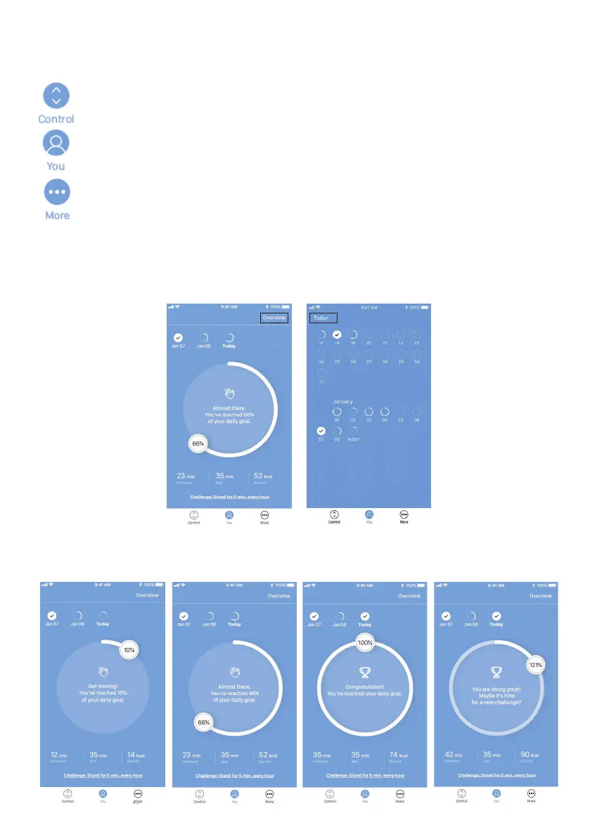 You is the page where you can view how close you are to reaching your daily goal. The progress is shown in