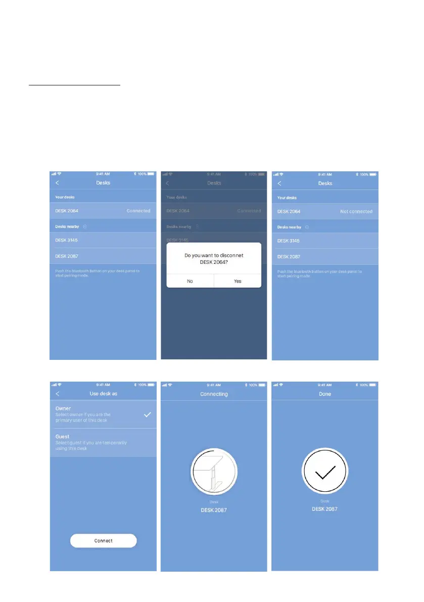 Steps 1 and 2 are only to be performed if the app is already connected to a desk.