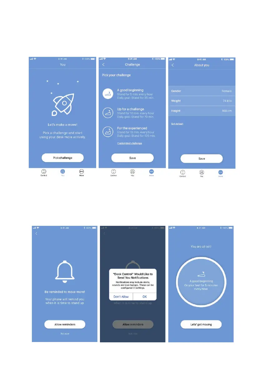 When the app on your smart device/computer is connected to the desk, you are prompted to pick a challenge