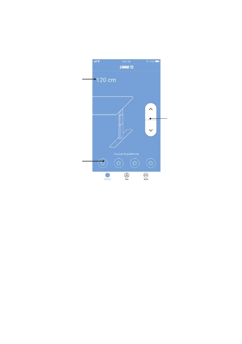 Actual desk height. In case an error occurs, the error code will be displayed instead of the height (does not apply