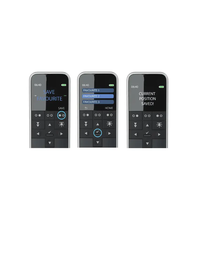 4. Highlight one of the four favourite positions using the ‘up’ and ‘down’ buttons and press the ‘select’ button to save the