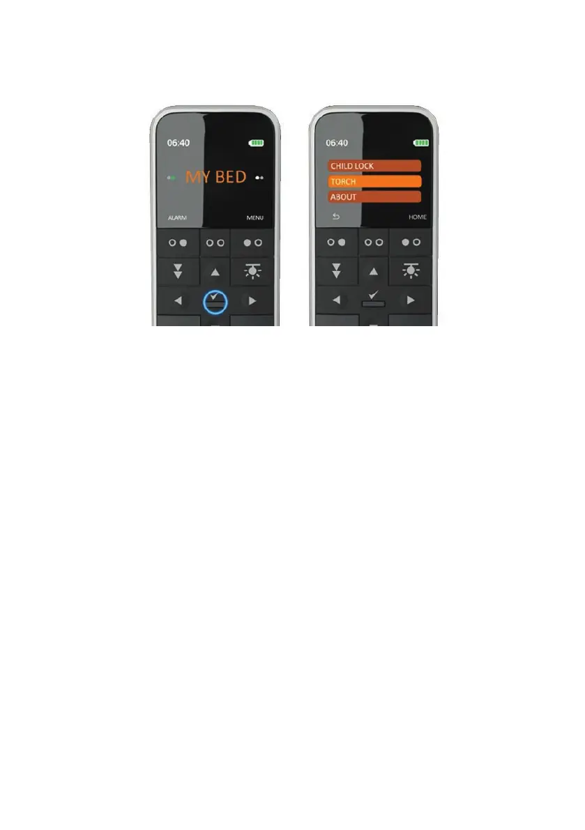 The items in the “MY BED” menu depend on the number of features configured. The maximum list consists of the