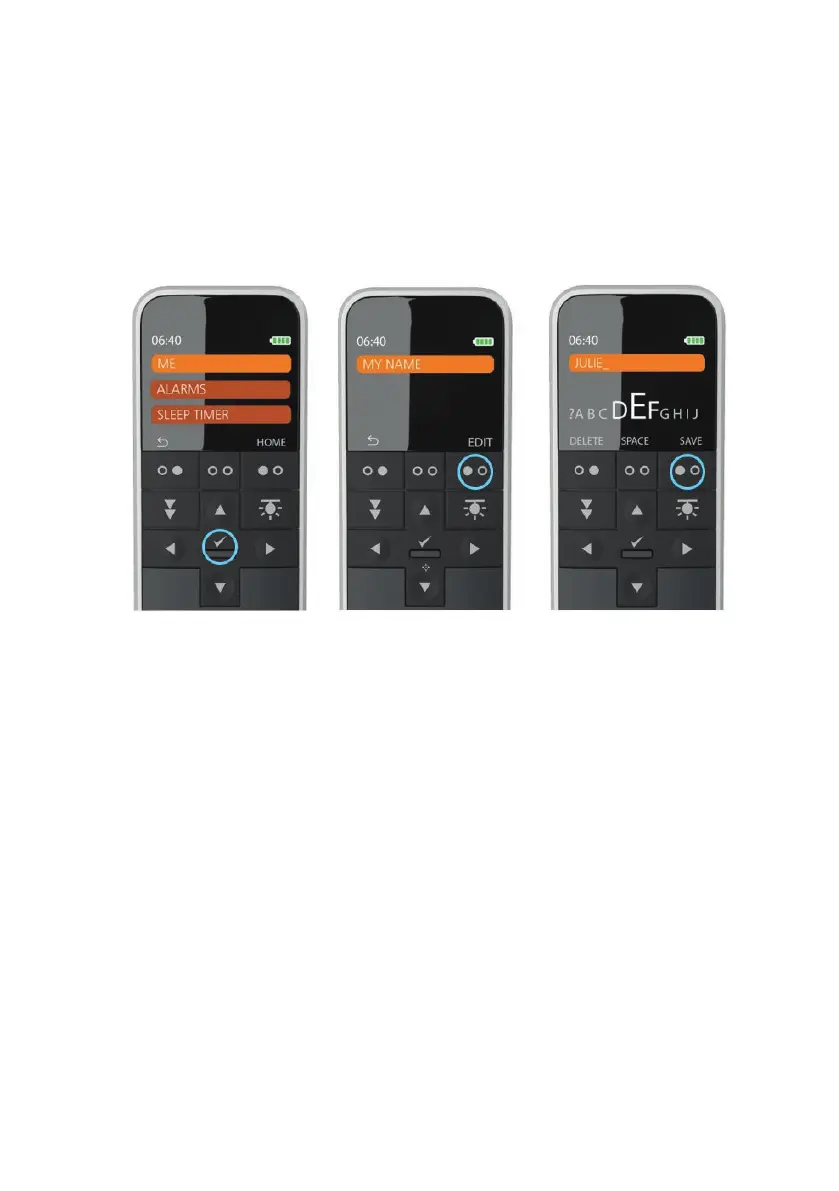 3. When the desired name is typed in, press button 3 “SAVE” to save the name.