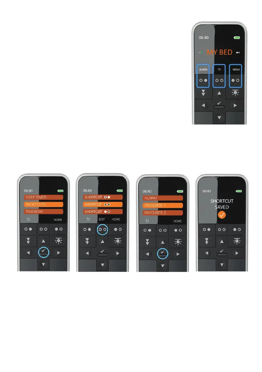Highlight the “SHORTCUTS” bar in the “MY BED” menu and press the ‘select’ button