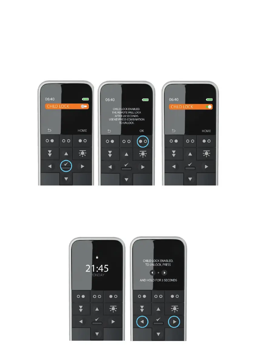 3. Press the ‘select’ button or button 3 “OK” to activate child lock.