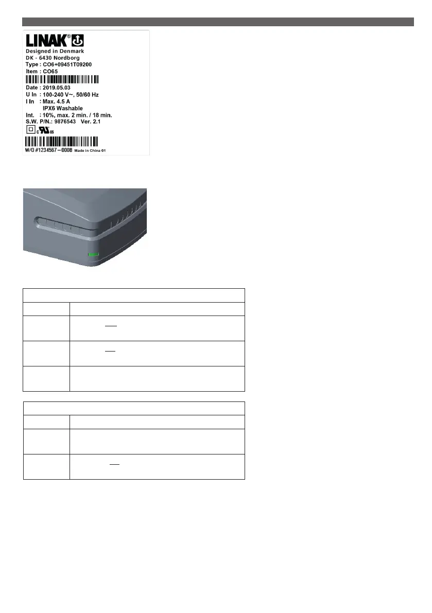 CO65 is equipped with a green LED for indication of mains power connected.