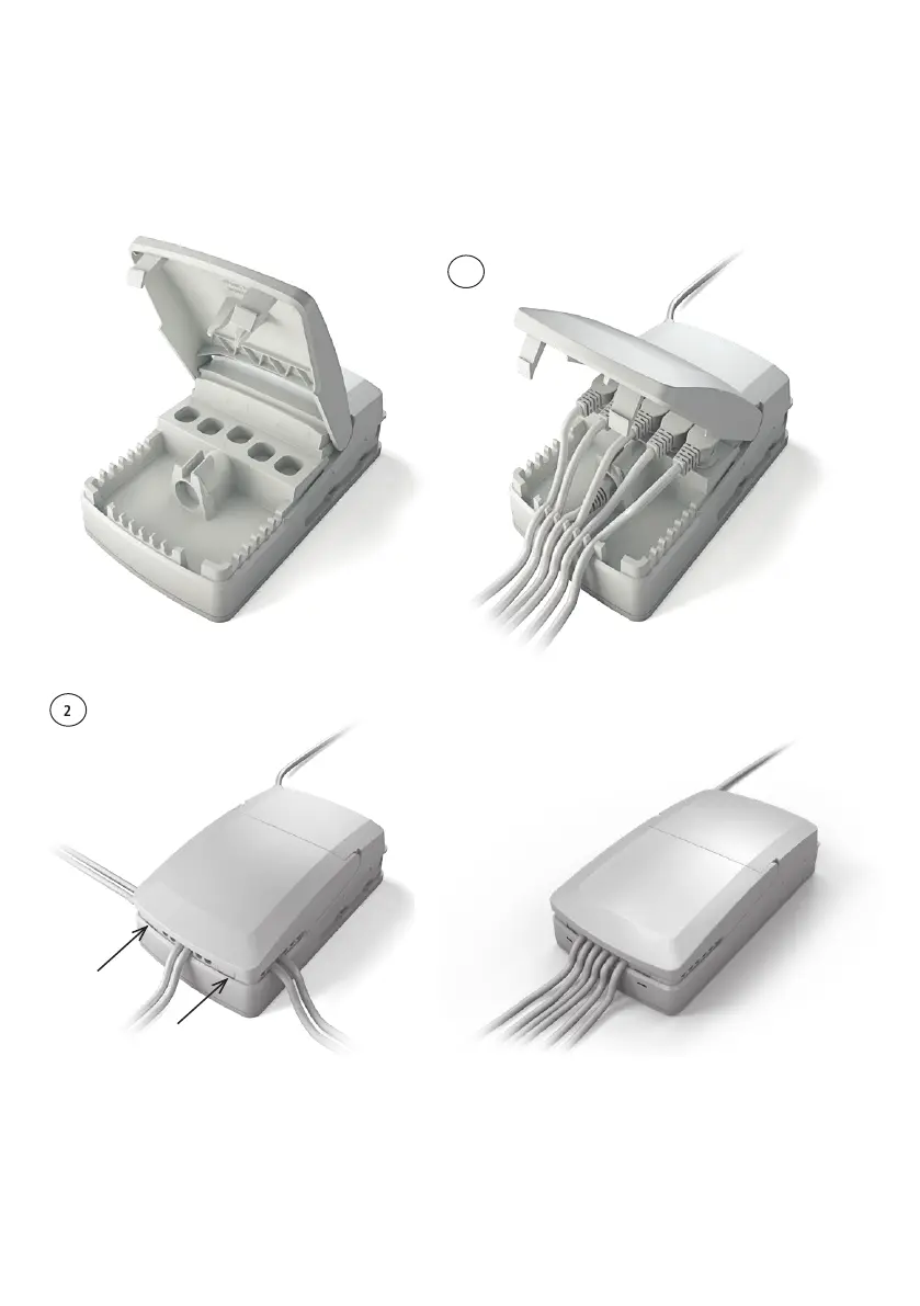 To allow free access to the cables, the lid has a rest position when completely opened.