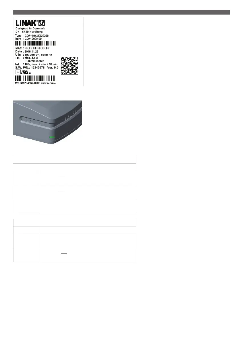 When the CO71 is connected to mains, the LED is green. Connected only to battery, the LED is off.