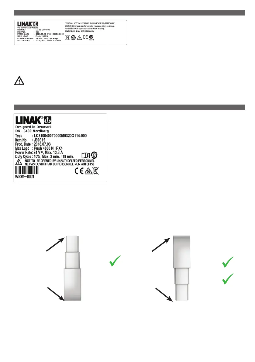 Note: The cable outlet for motor connection can be positioned at the top (smallest profile) or from the side of the column.