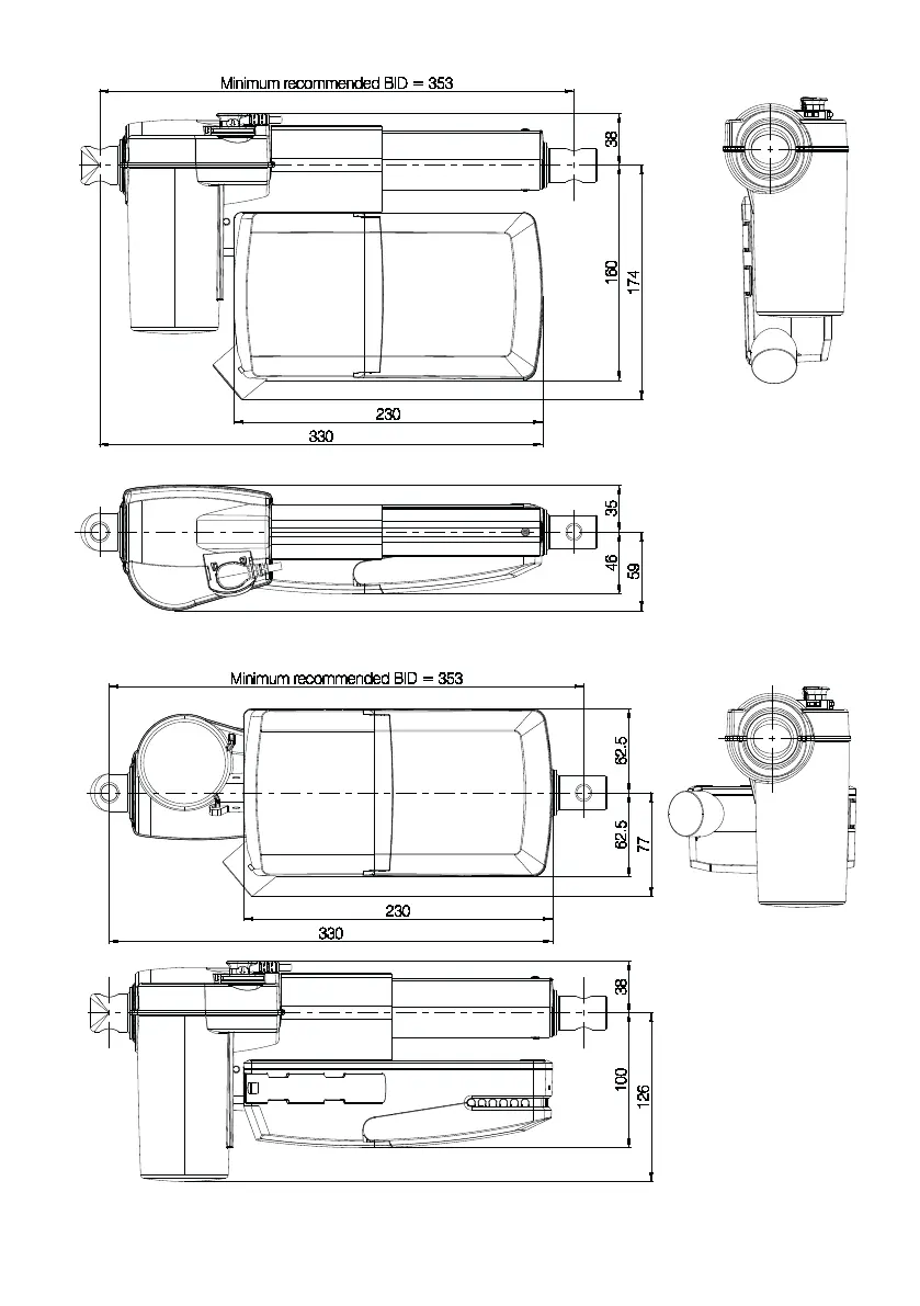 Dimensions – mounted with LA27
