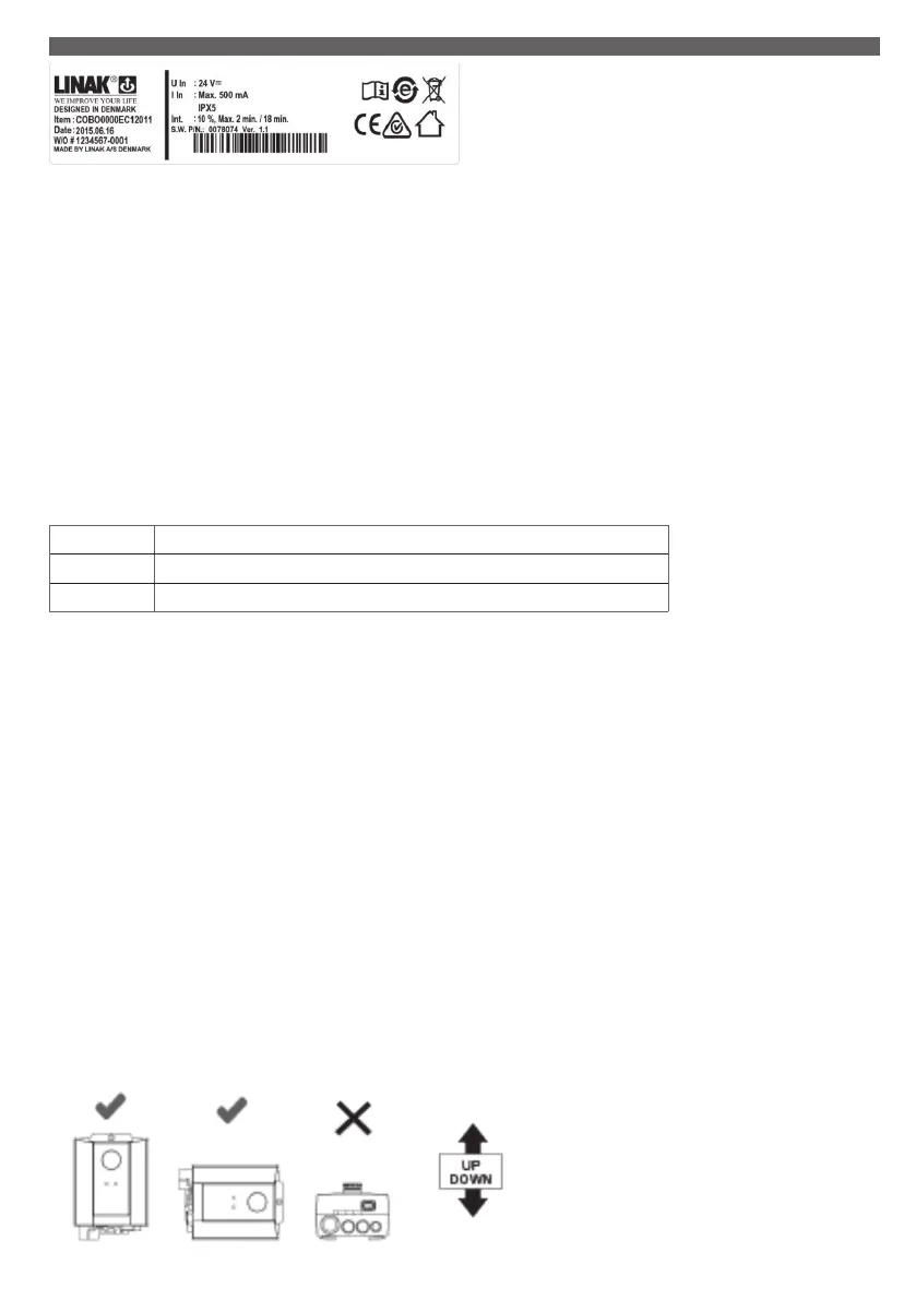 Compatibility: LINAK Batteries BAJ1, BAJ2 (24 V, 2.9 AH) or other 26 - 28 V power sources via customer battery connection.
