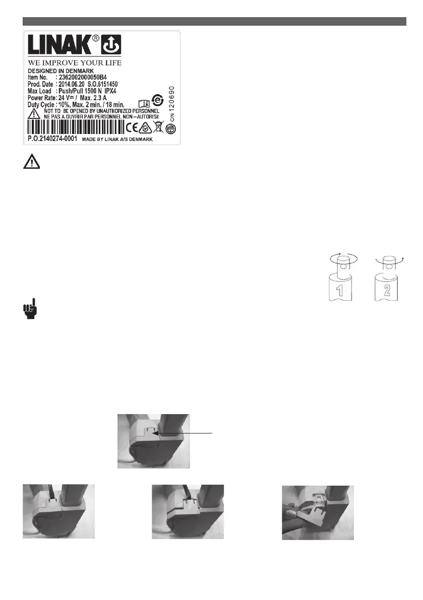 Instruction concerning the turning of the piston rod eye. When mounting and taking into use, it is not permitted