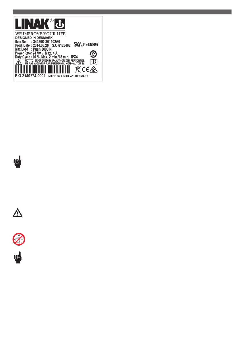 If the LA34 actuator is used in connection with a non-LINAK power supply the system must be equipped with current trip cut-off.