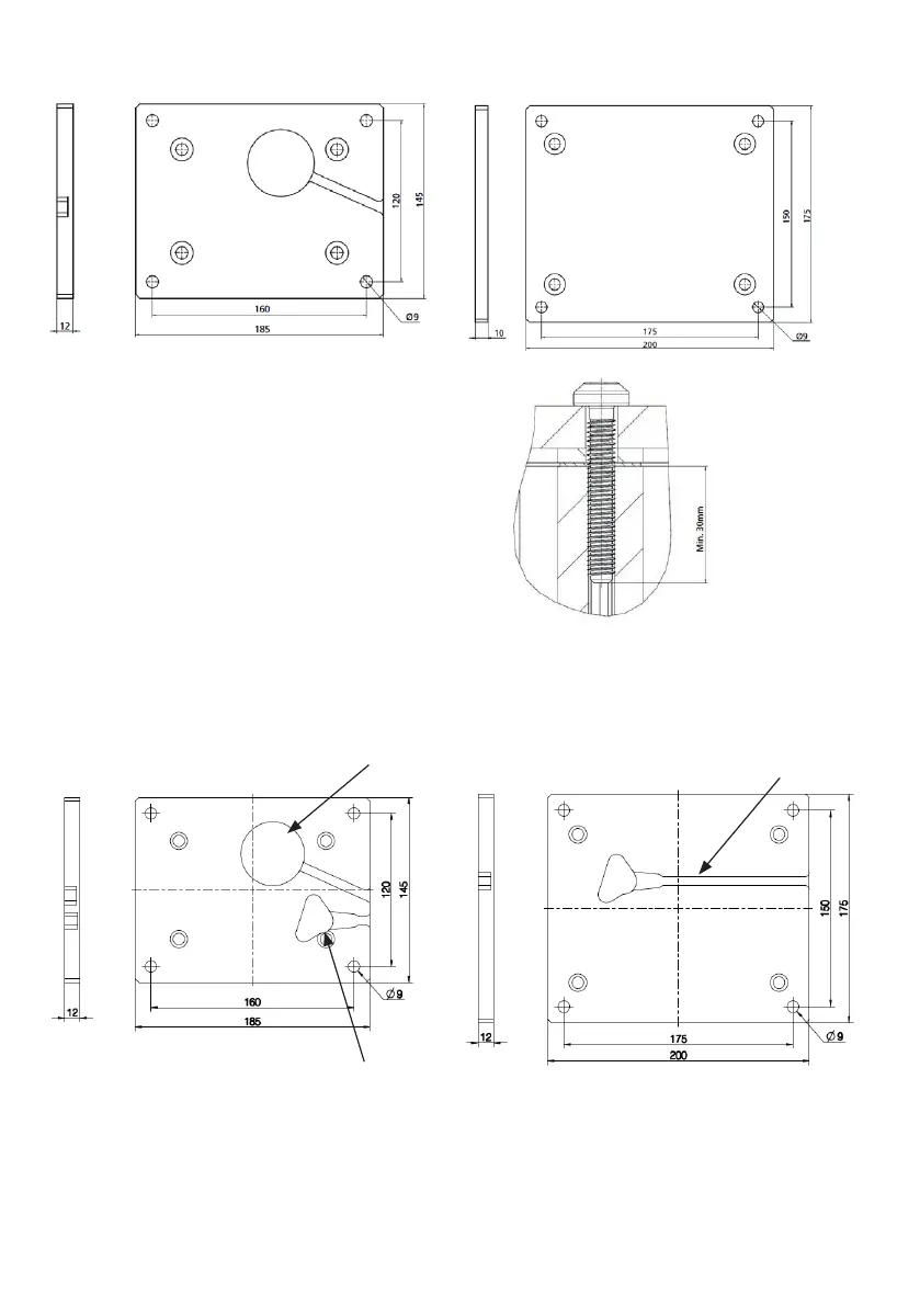 Please notice the thickness of the bottom plate is 12 mm. The thickness of the bottom plate without connections is 10 mm.