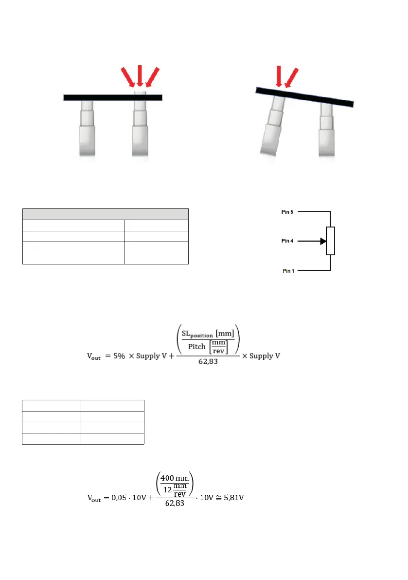 Example, in a system connecting a 10 V supply to potentiometer with an SL position of 400 mm and 6000 N variant, the output voltage at the given