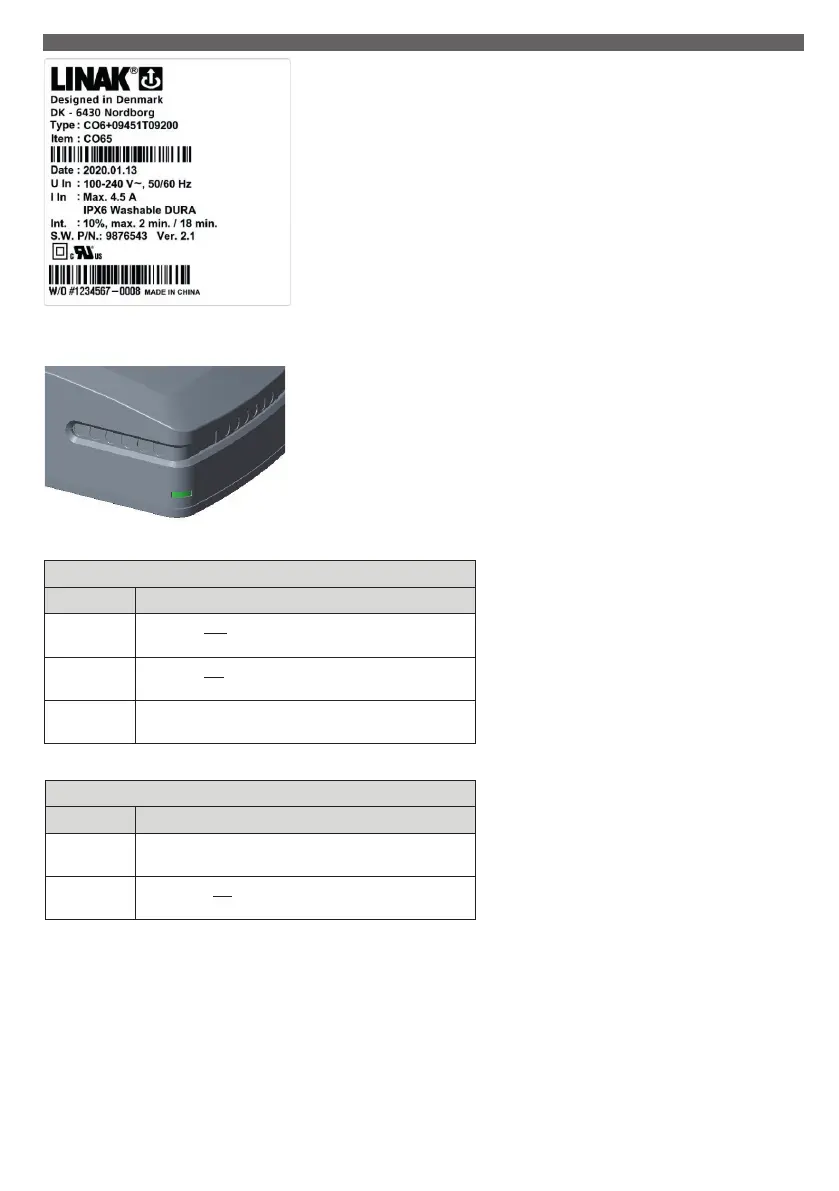 CO65 is equipped with a green LED for indication of mains power connected. When the CO65 is