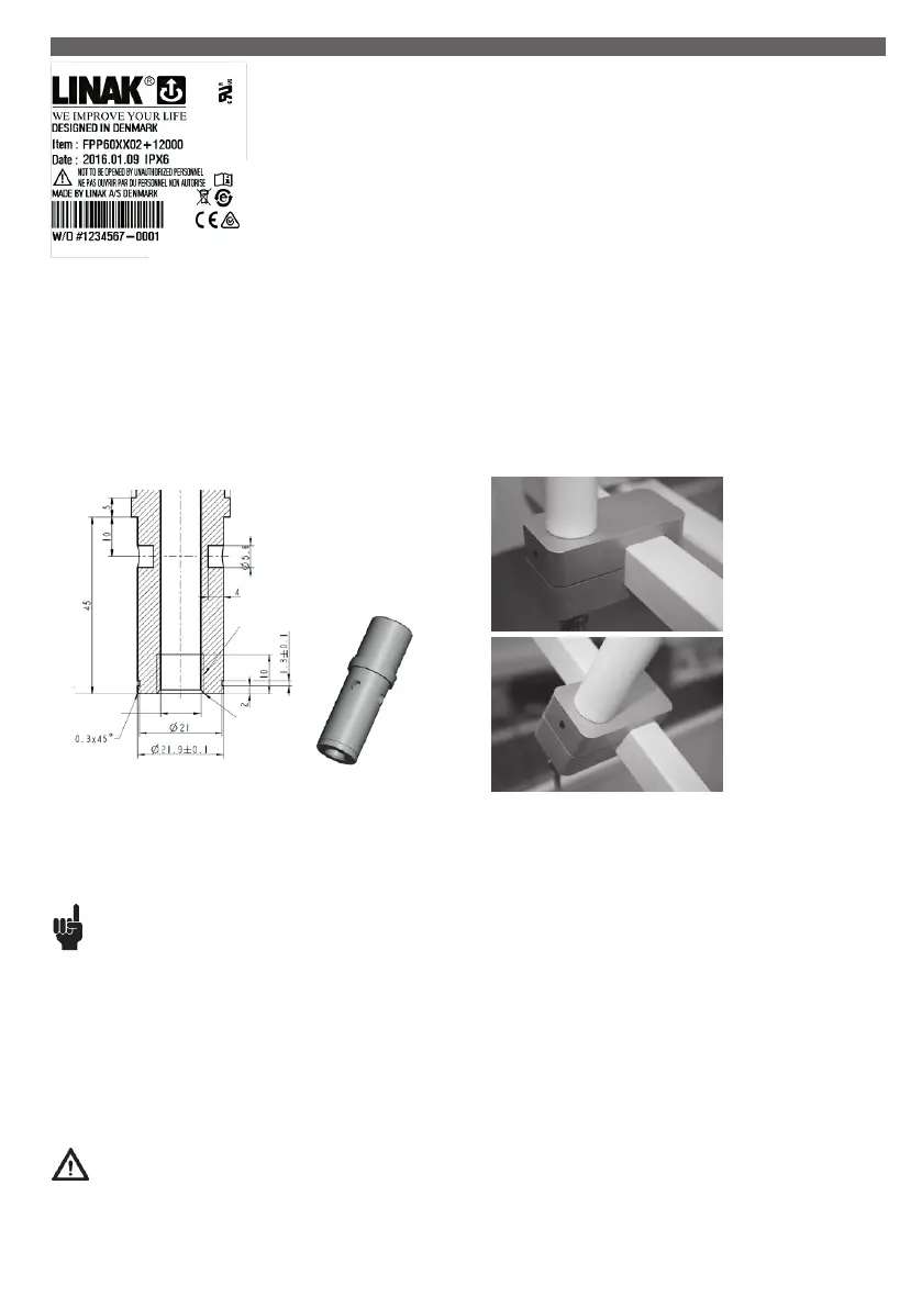 The bracket is not supplied by LINAK but must be designed and manufactured by the customer. It must fit the dimensions shown. A suggestion to