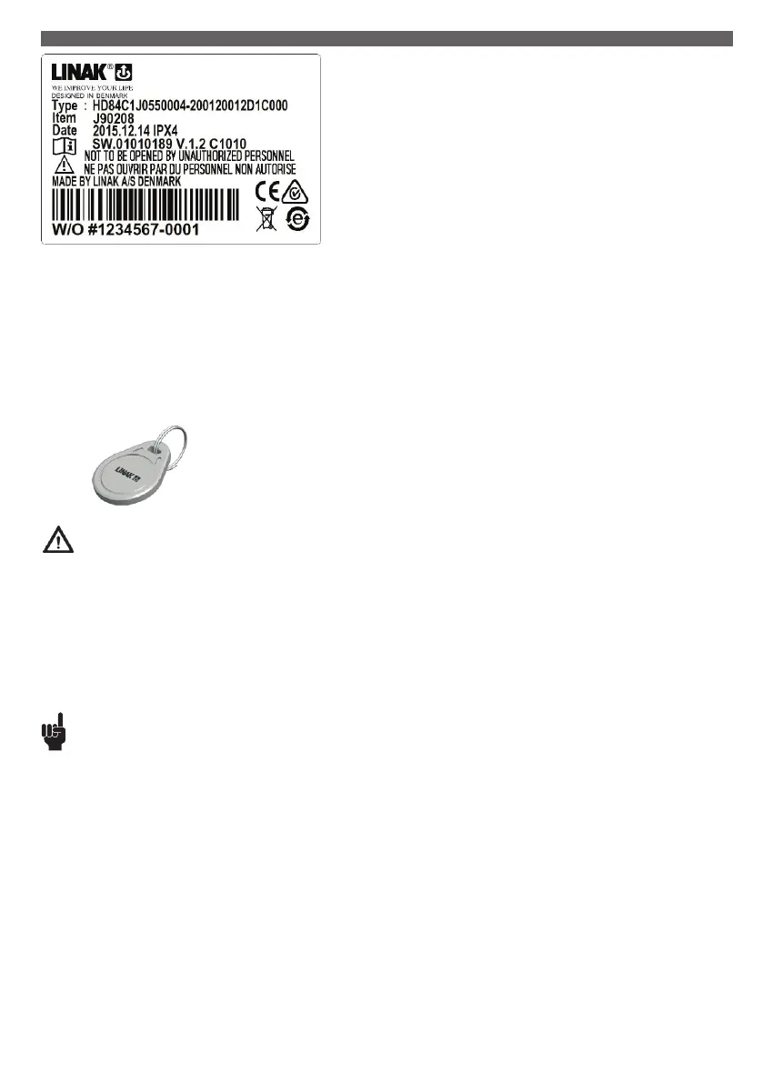 • Inform the customer to use only the magnet key supplied by LINAK. We also recommended to make a functional test of the application before putting it