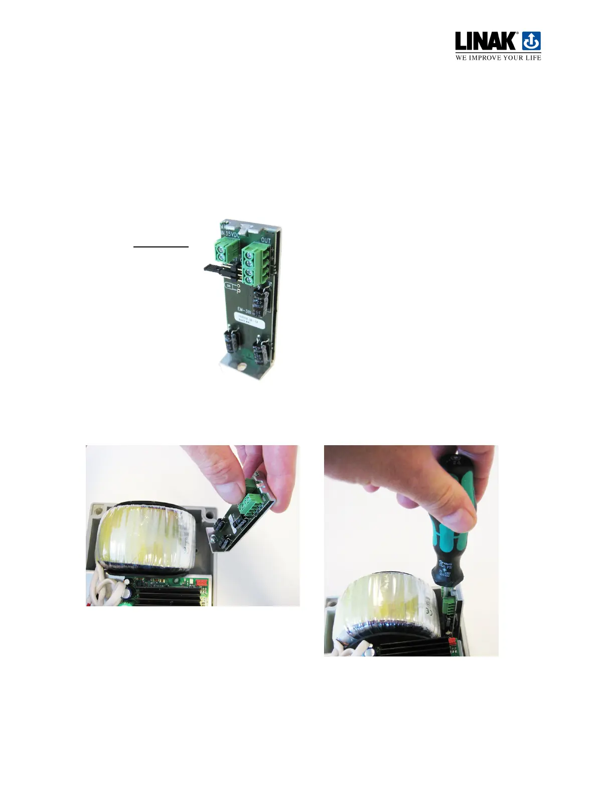 sensor in the actuator must be regulated to a constant 12 V. To do this, fit the DC-DC converter, EM-311-