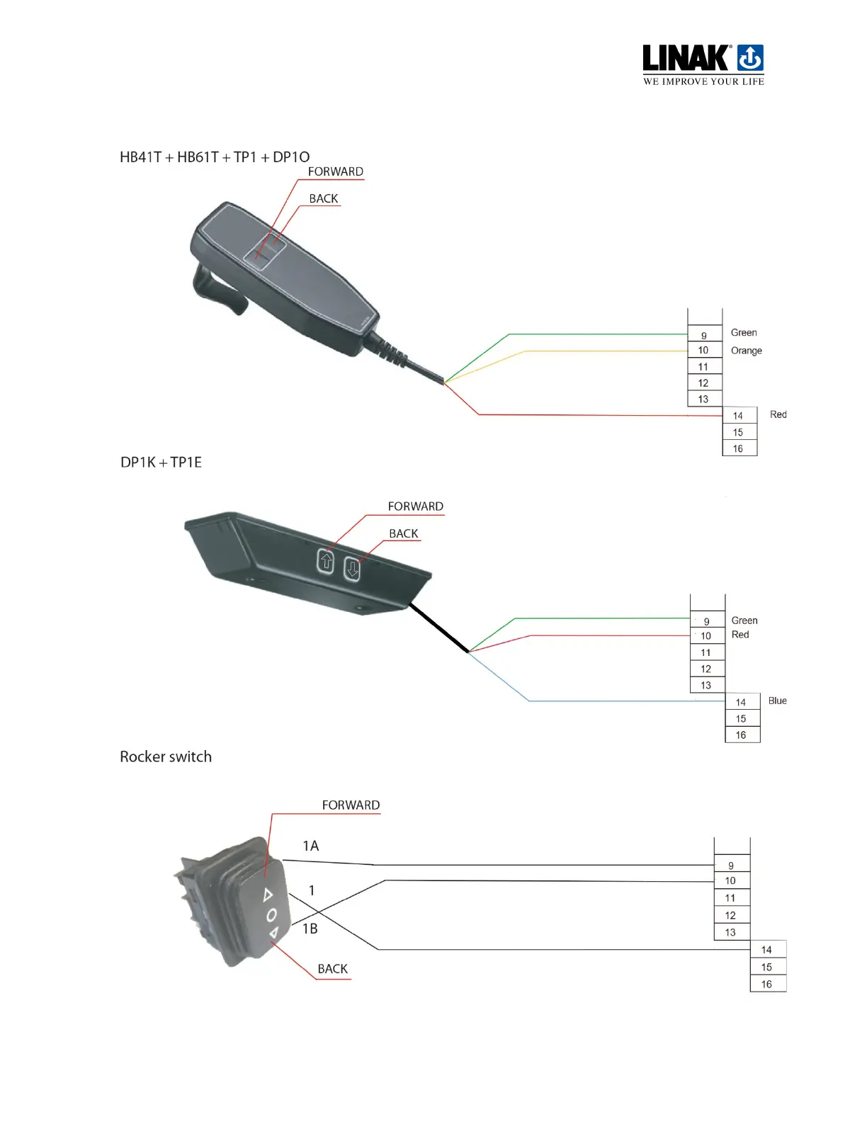Connection diagram for LINAK control devices