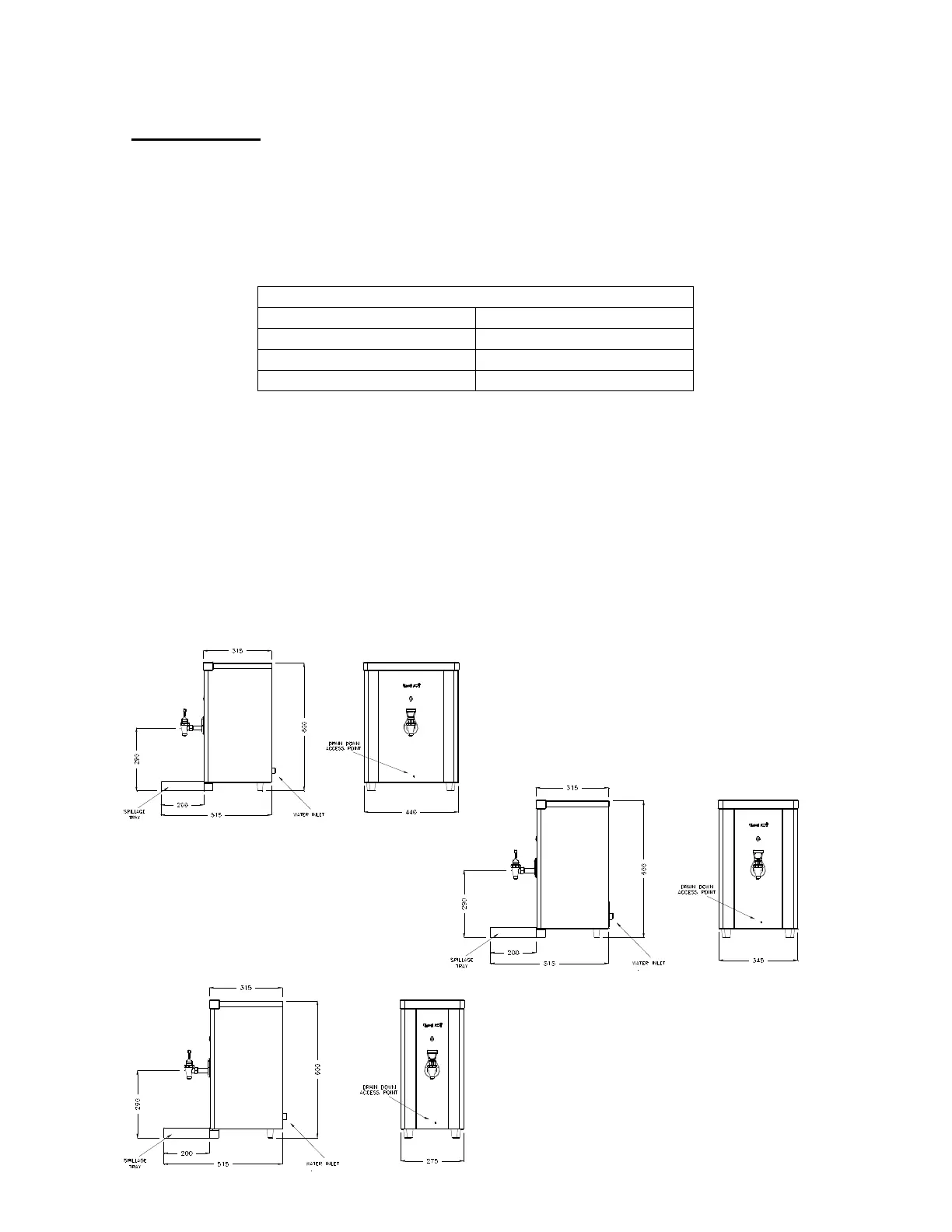 The spillage tray must be fitted with the appliance
