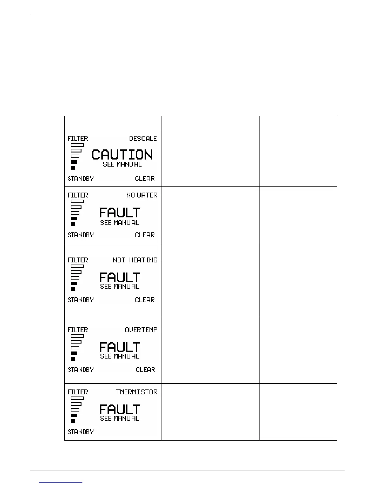 Before calling for service, draw off a litre of water, clear the fault code by