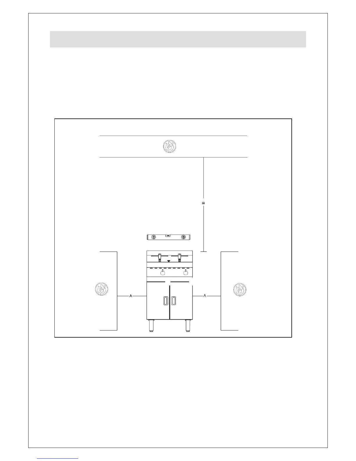 Minimum distances – see Fig 1, A 50mm B 1000mm.