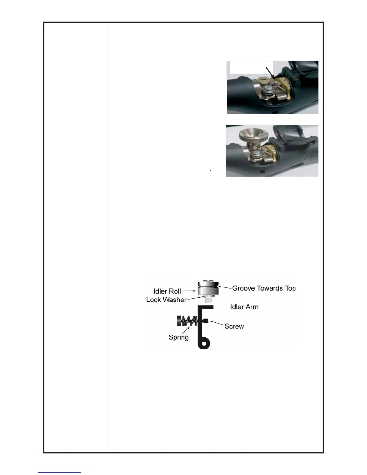 OTE: Lock washer must be under idler roll or it will not turn freel