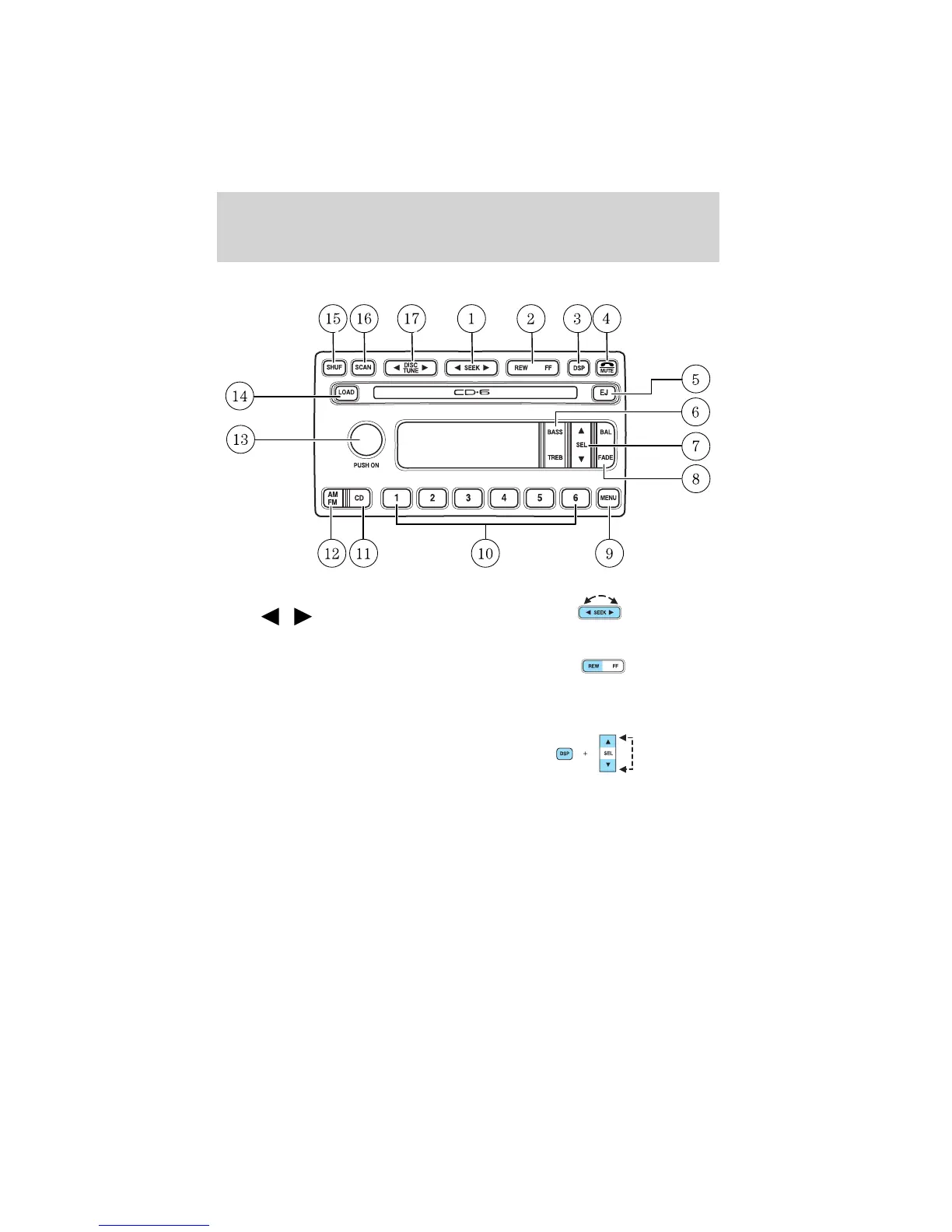 Fast forward: In CD mode, press until desired selection is reached.