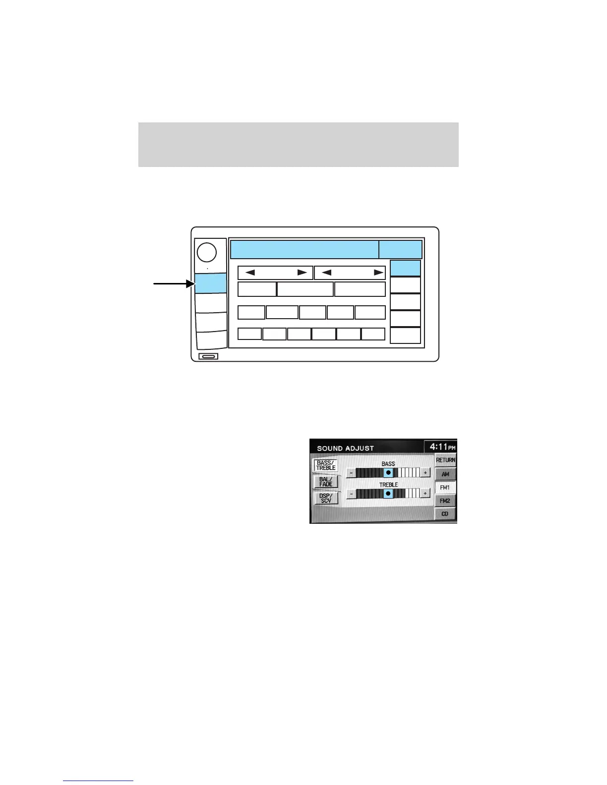 To access settings for Bass, Treble, Balance, Fade, DSP (Digital Signal