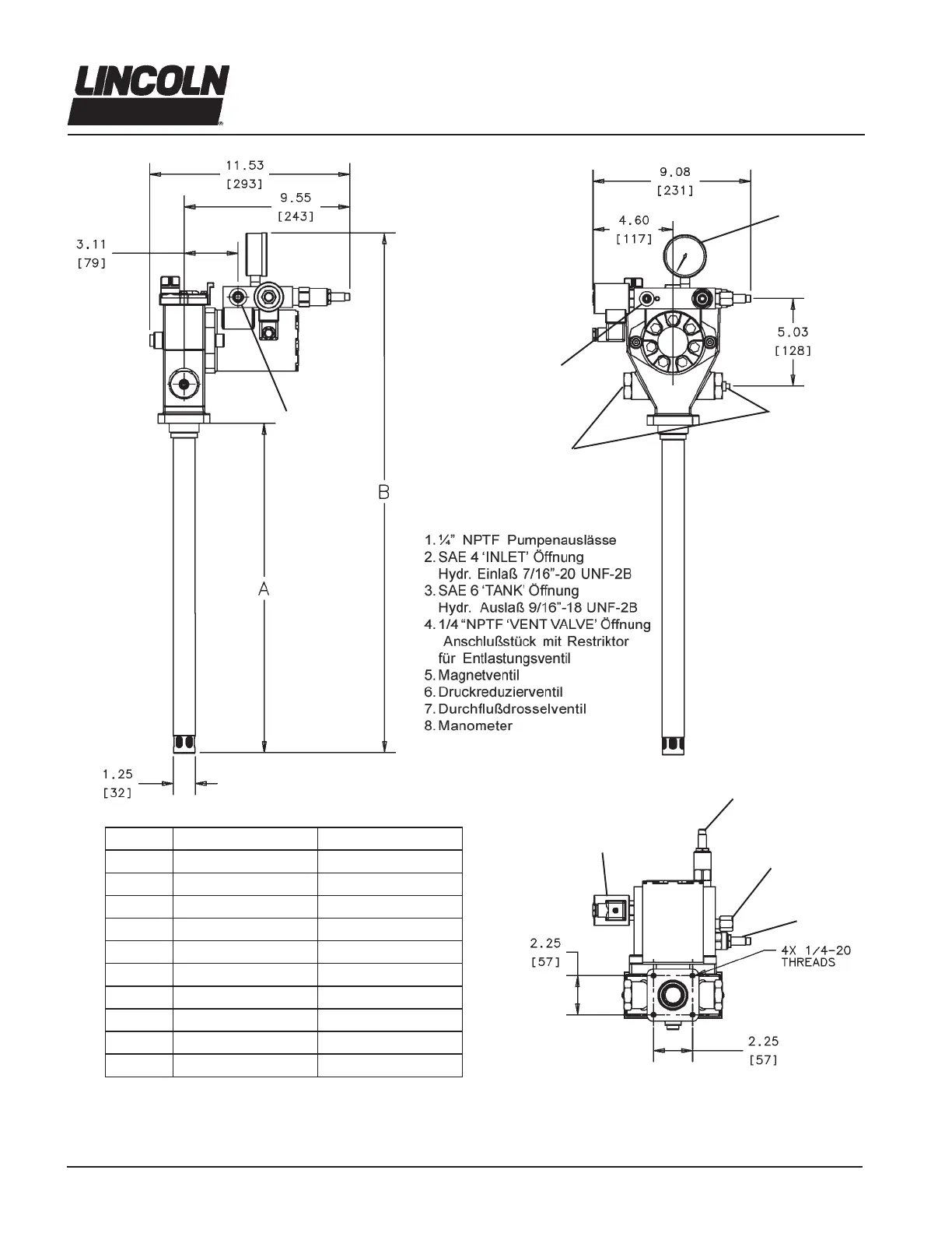 Modell Maß “A” Zoll (mm) Maß “B” Zoll (mm)