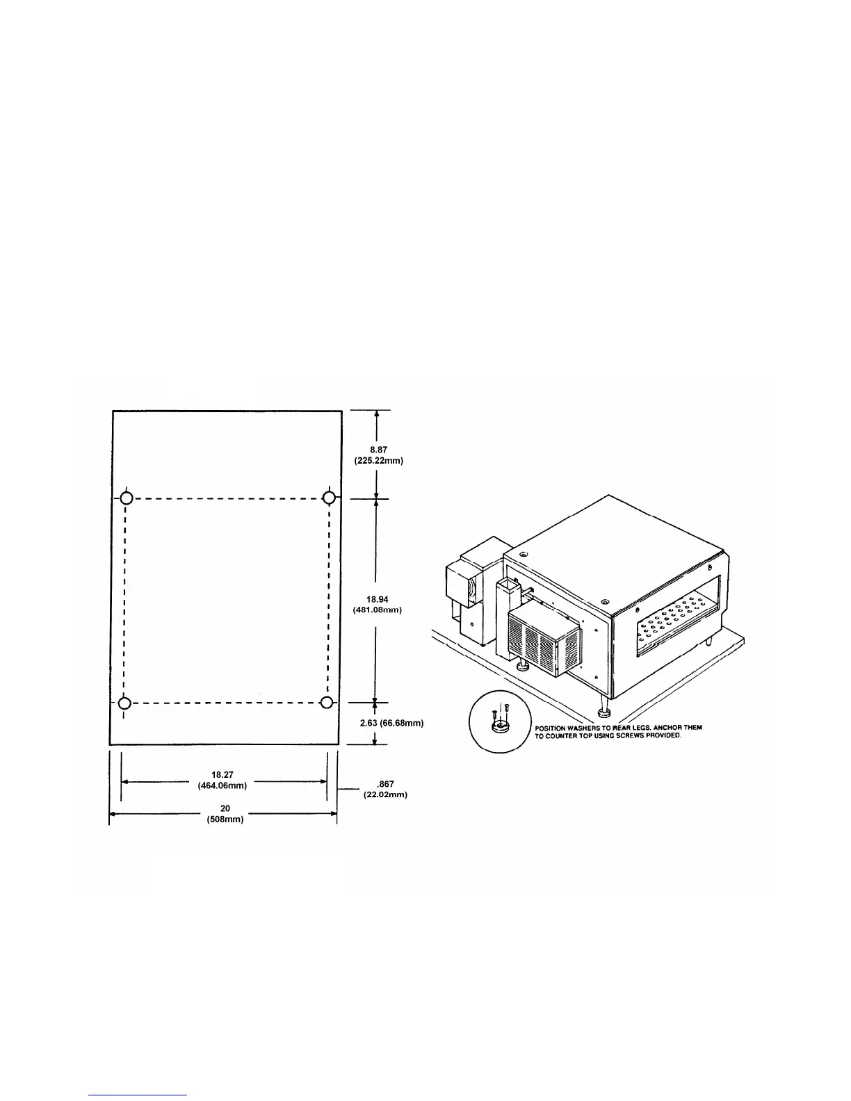 Position the oven on the countertop and carefully mark the position of the rear legs. Remove the oven from the