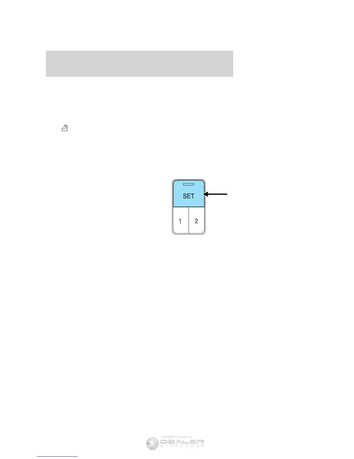 1. Press the SET control on the driver’s door panel.