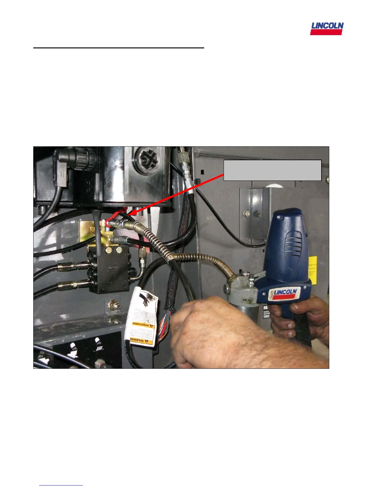 The picture below shows a Lincoln battery operated Power Luber as the grease gun supplying the